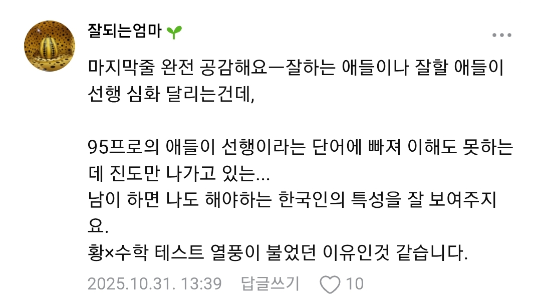 (in korea, everyone loves to do math ahead of their grade and show off their 'math skills' by how high of a grade level they're at. the grade level of the math you learn and your actual math skills are not related most of the time, but everyone loves to pretend they are.)